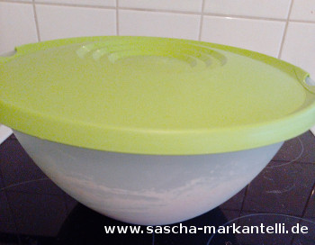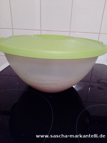 Rühren Sie alles gut durch und decken Sie die Schüssel dann ab. Am Besten ist es, wenn Sie ein Deckel auf der Schüssel geben können.