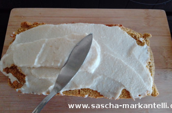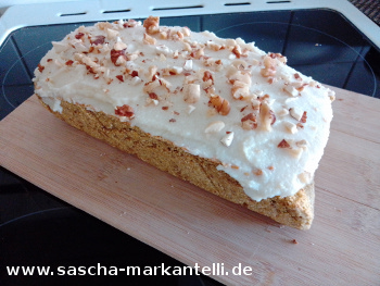 Für das Topping kommt oben drauf dann eine Creme aus Soja-Joghurt und gehackte Walnüsse.