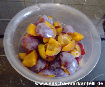 Dann wiegen Sie die Zwetschgen ab.