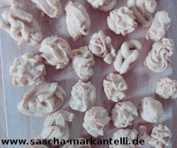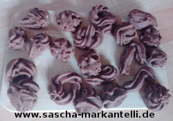 Ferner bin ich davon ausgegangen, dass wir dazu 20 g Teig entnehmen - pro Plätzchen.