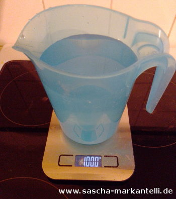 Geben Sie in einem Messbecher genau 1000 ml Wasser - also 1 Liter!