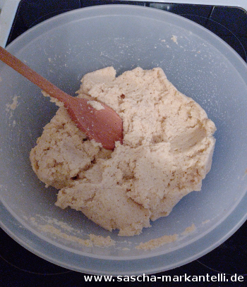 Sie werden feststellen, dass der Teig anschließend tatsächlich eine gute leicht feste Konsistenz bekommen wird!