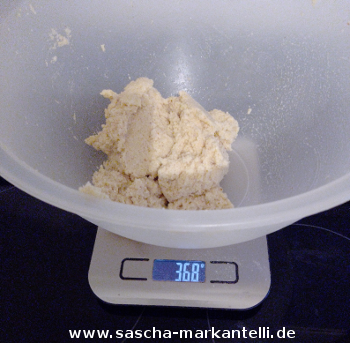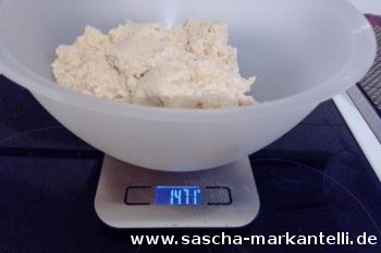 Also teilen wir den Teig nun in 4 Teile - zu je 367 oder 368 g.