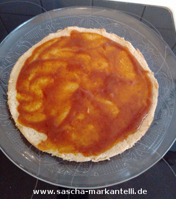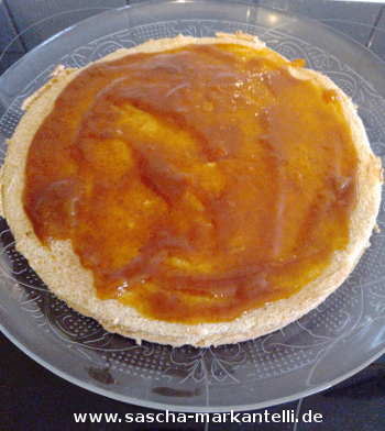 Und darauf streichen Sie nun den dritten und letzten Teil der Aprikosenmarmelade-Mischung.
