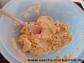 Und nun kann es sein, dass Sie noch etwas mehr Flüssigkeit benötigen. Dummerweise habe ich vergessen aufzuschreiben, wieviel zusätzliche Flüssigkeit benötigt wird. Und vergessen habe ich es auch, da ich diesen Rezept nicht jetzt erst, sondern schon vor 2 oder 3 Wochen gemacht habe. Insofern kann ich mich an die Flüssigkeitsmenge auch nicht mehr erinnern.