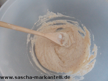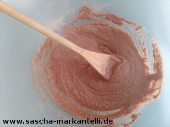 Dann geben Sie das Wasser dazu und verrühren alles erneut.