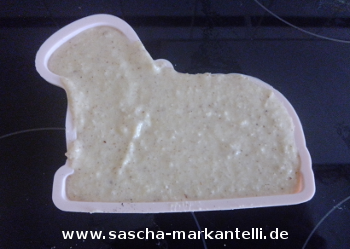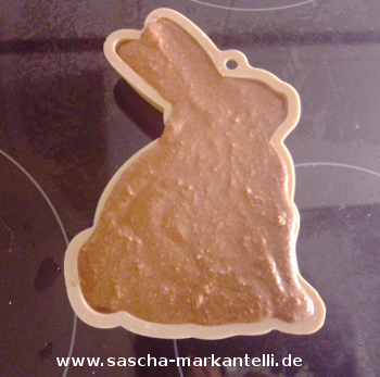 Anschließend geben Sie diesen Teig in die Silikonform für den Hase. Auch hier passt die Menge perfekt. :-)