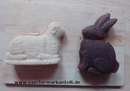 Naja, jedenfalls habe ich hier mal Rezepte für ein kleinen Osterlamm und Osterhase fertig gestellt - auch bekannt als "Häschen und Schäfchen".