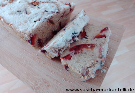 Dieser Kuchen ist recht einfach. Im Prinzip ist es ein Rührkuchen, in einer Kastenform, in dem einige klein geschnittenen Zwetschgen mit hinein kommen. Joa, aber auch das ist mal ganz lecker. :-)