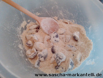 Diese Viertel-Stücke mischen Sie unter der trockenen Mehlmischung.